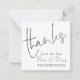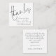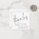 En charmig MINI STORLEK 2,5 x 2,5 tum fyrkant för ditt tackkort. OBS! Om du är i USA är 2,5-tumskvadraten mindre än USA:s minsta portokrav, så välj storlek 5,25 x 5,25-tumsruta om du tänker skicka dem (Observera också att kvadratiska kort kan kosta mer för e-post än rektangulära kort). Alternativt finns det andra korttyper för den här designen tillgängliga i den här samlingen. Fru Bröllop, tack Färg. Tack, och herr och fru står i ett handskriftsskript för stil på framsidan och resten av texten på vardera sidan som du lätt kan anpassa med namn, och ert tack till era gäster. Om du ser det i svartvitt kan du ändra till valfri färg genom att anpassa ytterligare alternativ.