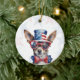 The design features a watercolor dog wearing a stars-and-stripes hat on a soft red and blue stars background. Personalize the back with your dog’s name, a custom 4th of July greeting, and the year to create a unique keepsake for 1776–2026 celebrations. Whether it’s to honor your pet, commemorate a special moment, or simply add a festive touch, this ornament makes a meaningful keepsake.
