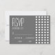 Mini Polka dots Bröllop OSA Response Cards (Mörk Silver Grått / White)...Den här roligten, det moderna och chic bröllop OSA-kortet är perfektens tillägg till dina bröllopsinbjudningar som bjuder in vänner, familj och närstående för att fira kärlek och giftermål. Underbar för alla brudar och brudar som planerar en romantisk stad bröllop. Underbaren för paret som kärlek rengör linjer och moderna beröringar. Utformningen har en massa mini polka dots. Helt anpassade... ange bara din information och dina bröllopsinbjudningar är redo att skickas ut. Det här svarskortet innehåller alternativ för matarnotering. Besök WindyCityStationery.com om du vill ha ett komplett bröllop OSA med "Mini Polka dots"-svarskort i ett stort urval av färg och matcha "Mini Polka dots"-vykort, frimärke, etiketter, klistermärken, spara datumet, bordsnummer, tackkort, mottagningskort, bröllopsinbjudningar med mera.