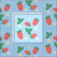 En strukturdesign som har en härlig och lekfull mönster av spridda minijordgubbar på en mjuk, himmel blå bakgrund. Jordgubbarna framställs i ett vibrerande rött med grönt löv och de blandas med litet, känsligt vitt eller ljust gula blommor, som adderar till charmen. Det övergripande intrycket är glatt, färdigt och sött, och skapar det idealiskt för olika barnartiklar som kläder, sängkläder eller daghemsdekoration.