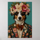 Miniature American Shepherd i kostymaffisch, Miniature American Shepherd Porträtt, Oljemålning, Djurhuvud Människokropp Affisch, Hundaffisch