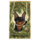 Porträtt från en minister Pinscher mot en grönt sprinklad julkrans med röda bär.