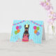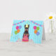 Miniature Pinscher hund med kakor och ballonger är ett perfekt födelsedagskort för någon som kärlekar denna ras.