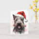 Färgfull och glatt juldesign med en minister Schnauzer som bär en julhatt.