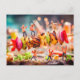 miniatyrarbetare som transporterar shashlik-skevar helg vykort