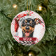 Miniatyrpinscher i tomtelucka julgransprydnad keramik