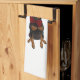 MiniatyrPinscherminuten klämmer fast den Bowtie Kökshandduk