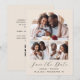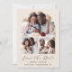 Detta enkla, minimalistiska "Spara datum"-kort har en 3-bildscollagebåge ovanför orden "Spara datum" i elegant svart handskriven stil, följt av parets namn, bröllopsdatum och stad i sans serif-teckensnitt på en beige bakgrund. Lägg till ett mer detaljerat meddelande med ytterligare information på baksidan, tillsammans med en QR-kod för att hjälpa dina gäster besöka din bröllopswebbplats.