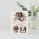 Den här enkla, minimalistiska Spara vykortet för datum innehåller ett bågformat foto överst och två mindre fyrkantiga foton vid grund. Mellan visas orden "Spara datum" i elegantens svarta handskriftsskript, följt av parets namn, bröllop datum och stad i sans serif-teckensnitt på en beige bakgrund. Lägg till din returadress och ytterligare information på baksidan, tillsammans med en QR-kod som hjälper dina gäster att besöka webbplatsen för bröllop.