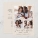 Den här enkla, minimalistiska Spara datumkortet innehåller en 3-fotokollage ovanför orden "Spara datum" i elegantens svarta handskriftsskript, följt av parets namn, bröllop datum och stad i sans serif-teckensnitt på en beige bakgrund. Lägg till ett mer detaljerat meddelande med ytterligare information om motsatsen, tillsammans med en QR-kod som hjälper dina gäster att besöka webbplatsen för bröllop.
