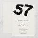 Fira din speciella dag med vår eleganta 57-års inbjudan - minimalistisk stil. Perfekt för din festfirande, denna moderna svart-vita inbjudan med feta siffror kommer att imponera på dina gäster med sin minimala, eleganta och enkla design. Lätt ändra namn, adress, datum etc, bara klicka <<personalize this design>>.