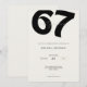 Fira din speciella dag med vår eleganta 67-års födelsedagsinbjudan - minimalistisk stil. Perfekt för din festfirande, denna moderna svart-vita inbjudan med feta siffror kommer att imponera dina gäster med sin minimala, eleganta och enkla design. Lätt ändra namn, adress, datum etc, bara klicka <<personalize this design>>.