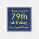 Den här vanliga födelsedagstexten med papper napkin-design innehåller ett meddelande som "Ha en underbar 79-årsdag, Anpassat namn!", där namn och födelsedagskalenummer kan anpassas. Anpassade pappra servetter som dessa kan vara roligt att ha i födelsedagsfest.