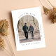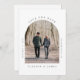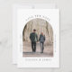 Minimalt spara datum meddelande-kort med ditt foto i en bågformig bild ram och enkel modern typografi.