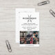 Vi presenterar det minimala Affärskortet Barber Barbershop Grid White Modern Monogram! visar anpassningsbar och foton, med en QR-kod för enkel åtkomst.