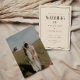 Minimal Beige Elfenbensvitt Fet Typografi Bröllopsfoto Inbjudan. En modern och elegant, beige/kräm och svart bröllopsinbjudan, designad med fet typografi och en tunn ramkant. Anpassa med ett förlovningsfoto eller allmänt parfoto på baksidan och lägg till era namn, bröllopsdatum, tid, plats och ytterligare information om det behövs på framsidan för familj, vänner och gäster.