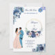 Minimal blå Blommigt med Bröllop par Inbjudningar