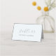 Söt och delikat quinceanera-gästkort för pastel innehåller namn och bordsnummer i silver grått färg på en vacker blå bakgrund. Klassiskt utseende och kalligrafiskt skript för elegant gör denna perfekt för platskort för många speciella händelser.
