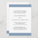 Modern allt i en bröllopsinbjudan med ett djärvt dammigt blått band över toppen och grund. Namn finns i ett klassiskt serif-teckensnitt och dina uppgifter finns i en kombination av ett modernt serif-teckensnitt och ett elegant-skript. Baksidan har ett band längs grund tillsammans med dina ytterligare uppgifter. Inget separat kort för djurutrymme krävs. Denna enkla och minimala utformning med traditionell formulering är underbar för ett formellt bröllop.
