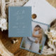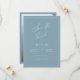 Ett minimalistiskt kort för att spara datumet med enkel, modern kalligrafi i en dammig blå nyans för det perfekta sättet att tillkännage ditt bröllop.
