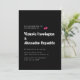 A clean and minimalist wedding invitation design featuring a black background and bold modern typography. The simple layout highlights the couple’s names with a subtle heart detail, creating a cozy yet stylish aesthetic. Perfect for couples who love understated elegance, modern romance, and timeless simplicity without floral or ornate elements.