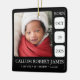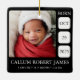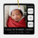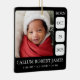 Celebrate your little one with bold elegance using this black and white minimalist baby birth stats ornament. Featuring a clean layout with timeless contrast, this ornament showcases your baby’s photo alongside their full name, birth date, time, weight, and length. The sharp black background and crisp white text create a modern, sophisticated look that works beautifully with any holiday decor style.