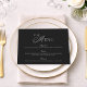This elegant black & white wedding menu features refined calligraphy paired with clean modern serif typography, creating a timeless and sophisticated look for your wedding reception.