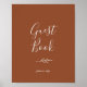 Denna minimala blad-terracotta-gästboksposter-skylt är perfekt för en boho-bröllop. Designen har en enkel grönsilhuett i jordnära bränt orange med minimalistisk ökenbohemsk stil.