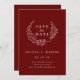 Minimal bladkrans burgunder Spara datumet - Spara datumet har en vacker bladkrans med modern typografi. Visas på bränd orange, men du kan enkelt ändra bakgrunden till din färgpalett i designverktyget. Spara datumet kommer att vara en del av en samling.