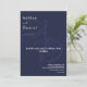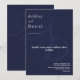 Denna eleganta marinblå och vita bröllopsinbjudan är perfekt för ett modernt bröllop. den enkla designen har elegant vit kalligrafi på en marinblå bakgrund med ett monogram.