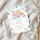 Grattis till din lilla flickas första födelsedag med den här lilla blommigten fotoinbjudan. Med mjuk pastel-löv, modernt skript och ett utrymme för din baby bild är det ett sött och snyggt val för ett enastående födelsedagsfirande.