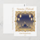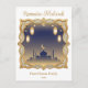 Minimal Blue & Gold Mosque Ramadan Mubarak Vykort