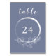 Minimal Boho Blå Bordskort Nummer Kort