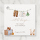 Vi firar babyduschen med våra söta, moderna minimalistiska vattenfärgade babyduschteman, förstahandsfunktionen med vattenfärgad illustration brun byxor, beige kräm-skjortans baby-skjortor med söt nalle, grey lämna hängande på garderoben, basket leksak och kalligrafi "Oh Boy"-text på beige-bakgrunden färg. Baksida brun färg. Perfekt för varje säsong: sommar, fall, vår, vinterbarndusch. Anpassa din egen text.
