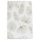 A delicate seamless floral pattern gift bag featuring elegant line art illustrations of wildflowers, leafy stems, and tiny berry branches on a clean white background. This minimalist botanical design uses soft neutral tones and fine outlines to create a calm, modern aesthetic.