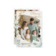 dina varmaste hälsningar med det här minsta botaniska penselfotosamlingskortet för julfoto, med en mjuk vattenfärgad blad ram i grönt och guld. Framsidan har din favoritfamilj porträtt med ett konstnärligt penseldrag gräns, medan baksidan visar fotokortplatser i många för att fånga omhuldade säsong-minnen. Perfekt för ett modernt, naturinspirerat framtidsperspektiv. Med den här mallen för anpassade kan du lägga till ditt familjs namn, årtal och uppriktiga helgdag. Ett elegant sätt att skapa en tidlös nyckelroll och sprida glädje till vänner och nära.
