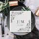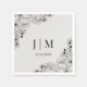 minimal botanisk svart grått bröllop i monogram pappersservett