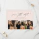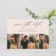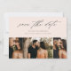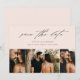 En romantisk, enkel fotospara datum-kort med vacker script kalligrafi, 3 foton och minimal text på framsidan. Baksidan innehåller bröllopswebbplatsen för mer information. Klicka på redigeringsknappen för att anpassa denna design.