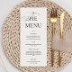Make a timeless statement with our Minimal Calligraphy Black & White Dinner Wedding Menu. Featuring elegant black calligraphy on a crisp white background, this design embodies pure sophistication and modern minimalism. Perfect for classic, contemporary, or black-tie weddings, it beautifully highlights your meal selections while adding a refined touch to your reception décor. Printed on premium-quality cardstock and fully customizable, it’s the perfect detail for an effortlessly chic celebration.