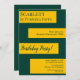 Den här inbjudan till elegant grönt och guld födelsedag är perfekt för en modern födelsedag. Den enkla designen har elegant grönt calligraphy på guld rand mot gröntens bakgrund.