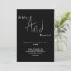 Den här elegantens svartvitt bröllopsinbjudan är perfekt för ett modernt bröllop. Den enkla designen har elegant vit kalligrafi på svart bakgrund.