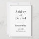 Den här eleganten svart och vitt bröllop spara datum är perfekt för ett modernt bröllop. Den enkla designen har elegant svart kalligrafi på vit bakgrund.