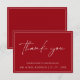 Minimal Crimson Red Script Typography Bröllop Bröllop tackar dig för kortet. Imponera på era gäster i bröllop med det här trendiget, skribenten red bröllop tack för ditt kort med ett vackert vitt skript på en krimson röd bakgrund. Tack vare det här kortet i bröllop har du en fantastisk röddesign, med moderna och minimala vibes, perfekt för ditt enkla, trendig, minimalistiska bröllop. Den minimala och moderna layouten uppmärksammar det vita skriptet, som står i kontrast till den röda bakgrunden. Tack vare det här kortet i bröllop kan du ange tonen för ett vackert bröllop-läge omgivet av antingen neutralt- eller rosa blommigtar och matcha bröllop-dekorering. Ett perfekt som tillägg till ett romantiskt eller starkt och glatt firande.