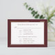 This dark burgundy script on white with a gold and black border is an elegant rsvp card and menu selection card. The back has a dark red background with your names and a gold ampersand. Can be used for weddings, vow renewals or anniversaries
