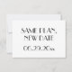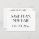 Minimal Art Deco stil vita bröllop Save The Date platta kort med utbytbar text Samma Plan Nytt Datum