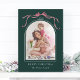 Minimal Deep Blush Pink Bow Christmas Photo Green Julkort