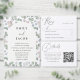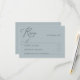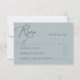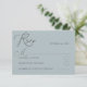 Den här enkla och elegant dammiga blå OSA kort är perfekten som tillägg till din bröllop-kontorssvit. Med en mjuk vattenfärgsbakgrund i en romantisk dammig blå skugga är den designad med grått-typografi av modern mörk och en ren, minimalistisk layout. Fullständigt anpassade till kostym i firande kompletterar detta svarskort på ett utmärkt sätt boho, minimalistiska, moderna och destinationsbaserade bröllopsteman med ett enkelt stil.