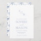 Elevate your wedding suite with this elegant dusty blue invitation featuring a refined monogram and minimalist fine-art typography. The clean layout, soft blue accents, and matching floral backer create a timeless and sophisticated look perfect for modern, romantic, and classic weddings.