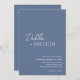 Modern dammiga blått allt i en bröllopsinbjudan med en enkel och minimal design med bridens namn i ett elegant-skript och brudgummens namn i en contemporary sans serif-typsnitt. Nedan i det nedre hörnet av högerna finns dina händelsedetaljer i en minimalistisk layout. På baksidan finns ytterligare information och QR-kod, så att du kan hoppa över kortet och OSA kort.