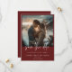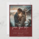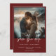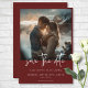 Den här bröllop spara datum-kortsdesignen har en dammig bakgrund i vin och är perfektens arbetsyta för ditt favoritfoto. De enkla detaljerna visas i vit text. Baksidan har parets första namn. Unik och elegant, den här utformningen kan användas för vilken säsong som helst. Skapat av Farmhouse Press.
